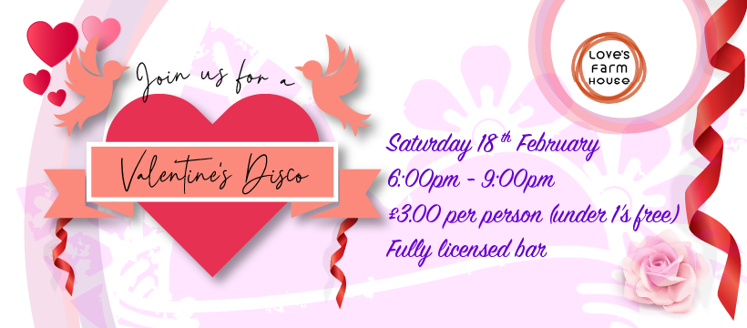 Join us for an evening of family fun and cheesy Valentine’s hits on Saturday 18th February from 6pm-9pm