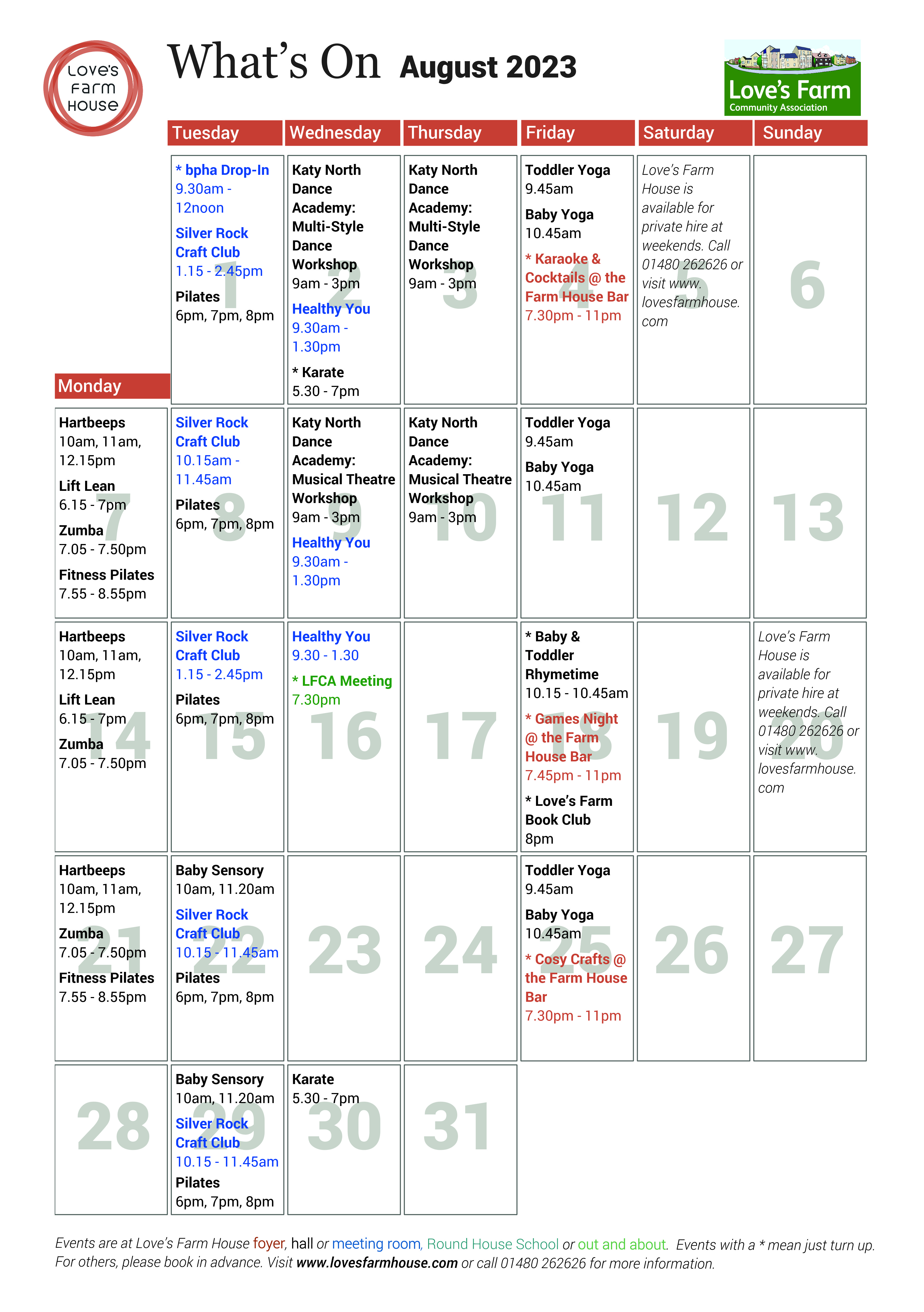 It may be the school holidays, but there’s plenty going on at Love’s Farm House this August!
